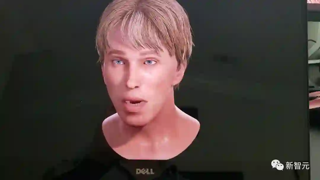 他先是扫描自己的脸部,生成了一个3D的虚拟动画人像。在需要公开讲话的时候,他就会在胸前的屏幕上展示这个形象。