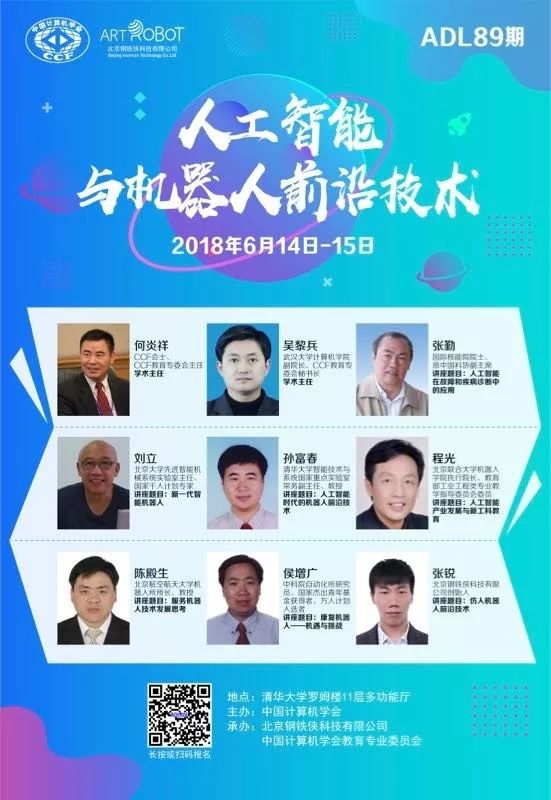 6月14-15日,CCF ADL89期邀请人工智能领域重量级专家,对人工智能与机器人前沿技术、专业建设、教学方法及人才培养做系统性解读,欢迎关注!