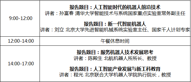 智能机器人产业作为人工智能领域的“前沿”阵地,涉及智能控制、信息通讯、传感技术等多领域技术融合。为配合国家新技术产业布局,推动教育体系改革,本次活动邀请了人工智能及机器人领域的重量级专家学者,对人工智能与机器人前沿技术、专业建设、教学方法及人才培养做系统性的报告。期望能够通过本次活动帮助高校更好的开展人工智能与机器人教育工作。