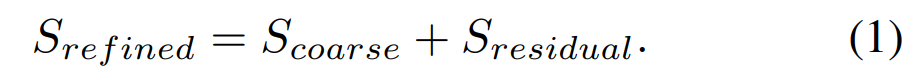 优化模块(RM)[22, 6] 通常被设计成残差块,通过学习显著图和真值之间的残差 S_residual 来细化预测的粗略显著图 S_coarse,其中: