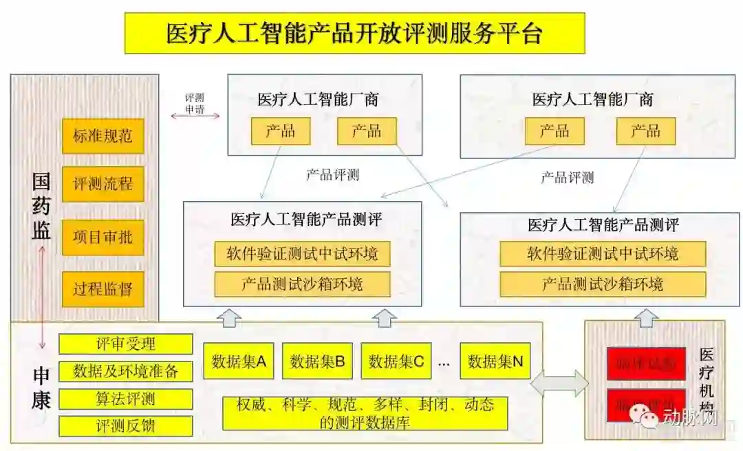 同时,申康中心还将建设人工智能产品具体测评平台,其工作运行方式由下图所示。
