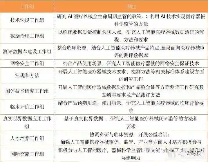 从10个工作组的职能分布上看,本次会议可谓深思熟虑。创新平台不仅将审批常见的临床、数据标准化、网络安全等问题纳入考核之中,还将人工智能人才培养、人工智能国际监督交流等非政府机构职能纳入了并行工作组。