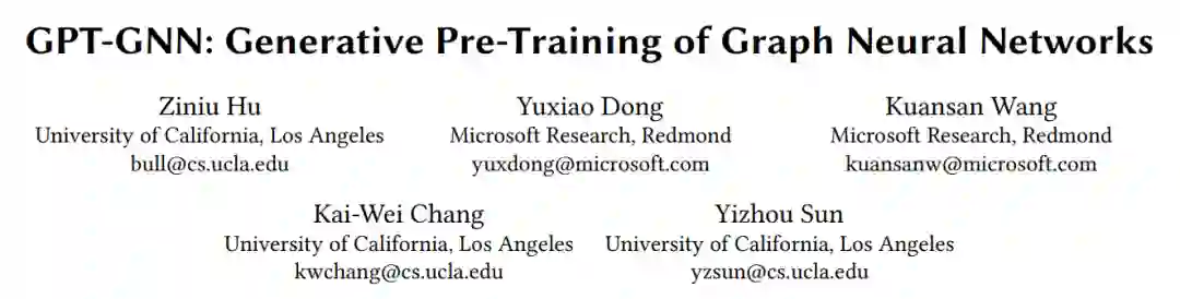 便捷下载,请关注专知公众号(点击上方蓝色专知关注) 后台回复“GPT-GNN” 可以获取《【KDD2020】图神经网络生成式预训练,GPT-GNN: Generative Pre-Training of Graph Neural Networks》专知下载链接索引