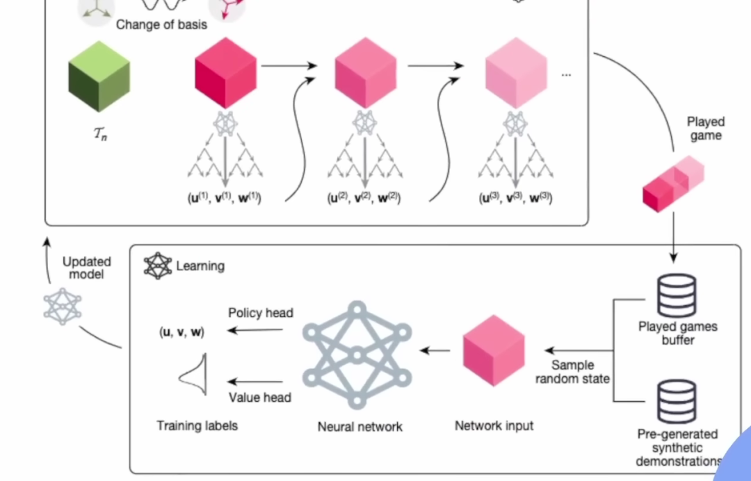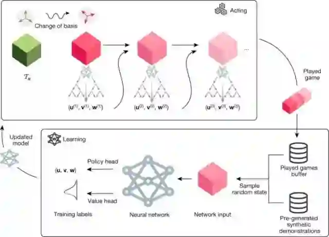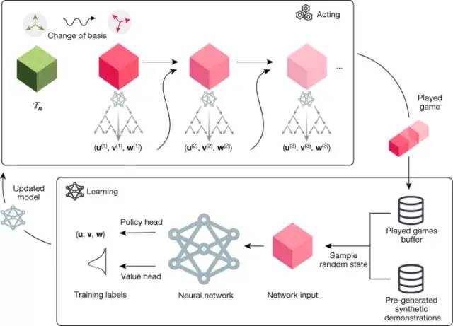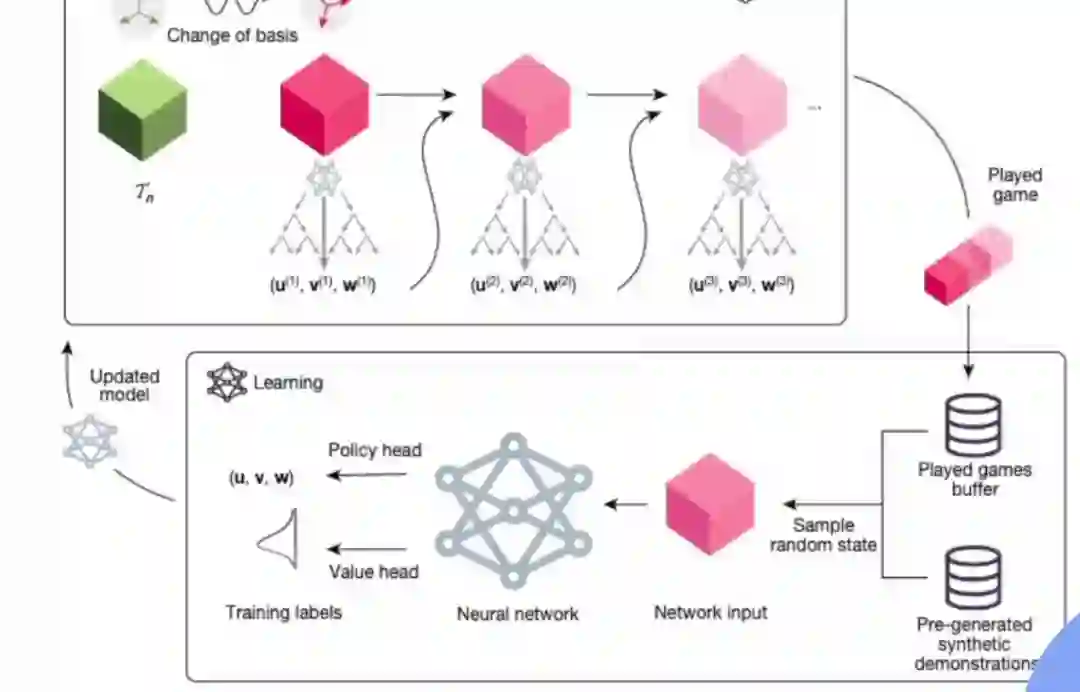 这篇论文在德国数学家Volken Strassen「用加法换乘法」思路和算法的基础上,构建了一个基于AlphaZero的强化学习模型,更高效地探索进一步提高矩阵乘法速度的通用方法。