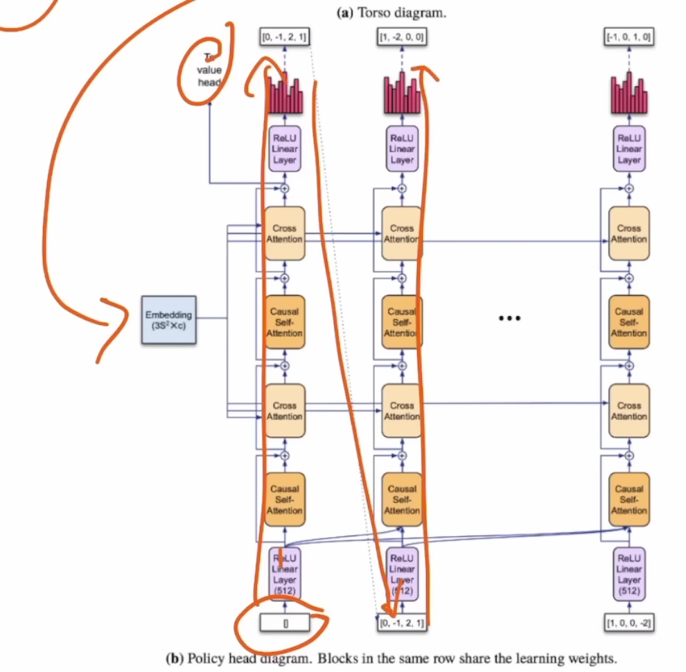 Value Head是从Policy Head中获取嵌入,然后通过一些神经网络推动。