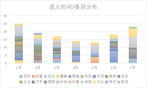 这可能和外部环境有关,1月和7月是寒暑假,娱乐产品的数据都会偏高。具体到类别,1月主要因民生、体娱类别拉升,7月除了民生和体娱,文化类也争了口气——出了5个黑马。