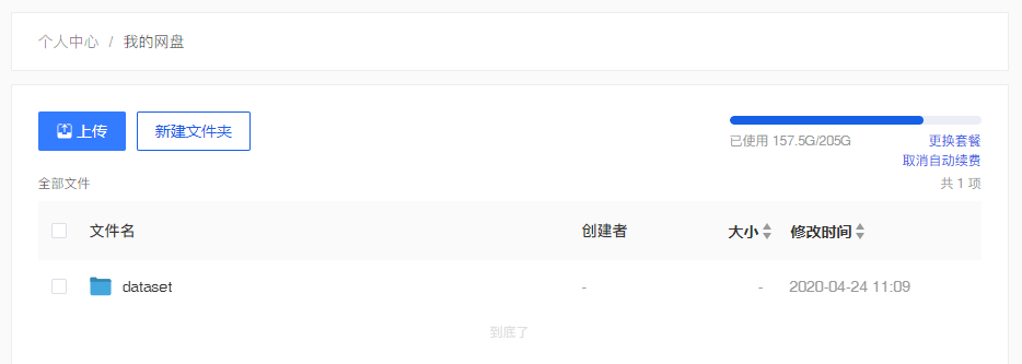 网盘是永久性的存储,用户可以方便的管理其数据,矩池云为每一位注册的用户提供了 5G 的免费容量。