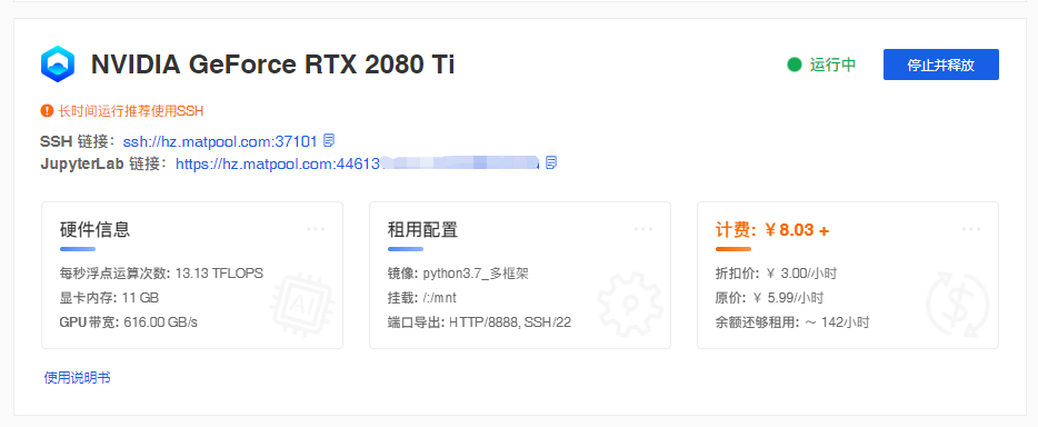 矩池云提供了 SSH 和 HTTP 两种链接方式。