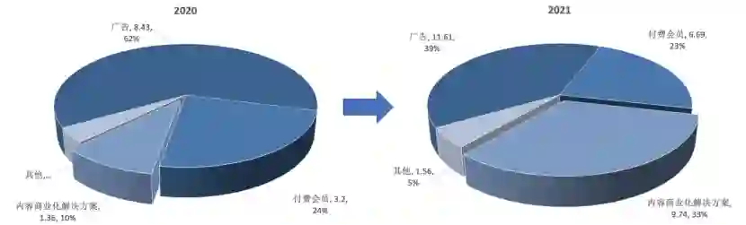 图3:2020~2021年知乎收入结构的变化 资料来源:知乎财报,36氪整理