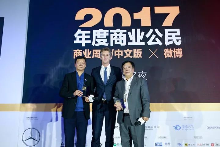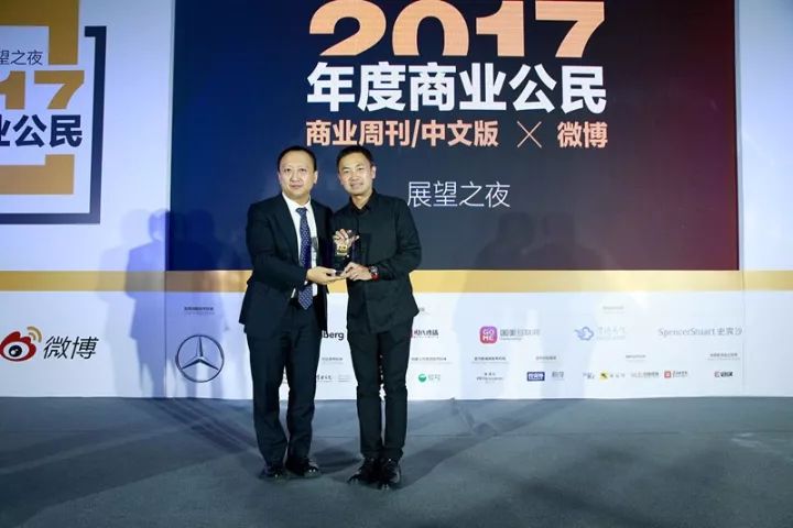 摩拜单车联合创始人兼CEO王晓峰获得新商业公民“创新模式奖”,柔宇科技创始人/董事长兼CEO刘自鸿获得新商业公民“创新科技奖”,由《商业周刊/中文版》事业群执行主编范荣靖先生担任颁奖嘉宾。
