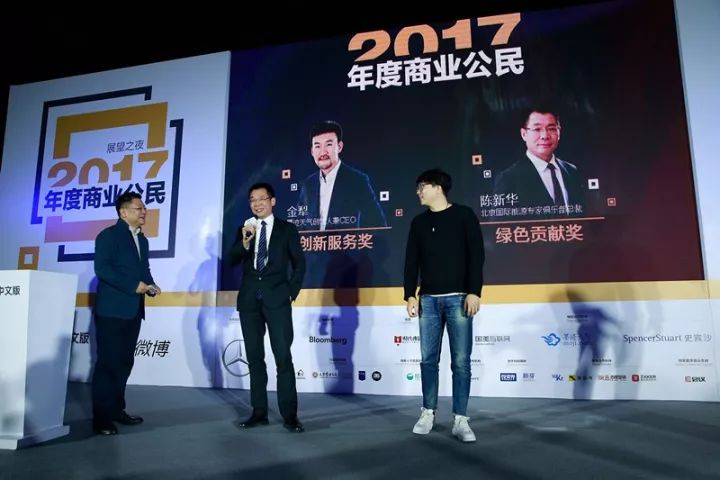本届“新商业公民”奖项共设个十三个单项奖,分别由墨迹天气创始人兼CEO金犁获得新商业公民“创新服务奖”,北京国际能源专家俱乐部总裁陈新华获得新商业公民“绿色贡献奖”。