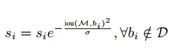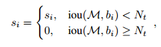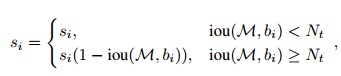 由上面的两种函数形式可以看出:M为当前得分最高框, bi 为待处理框, bi 和M的IOU越大, bi 的得分 si就下降的越厉害。