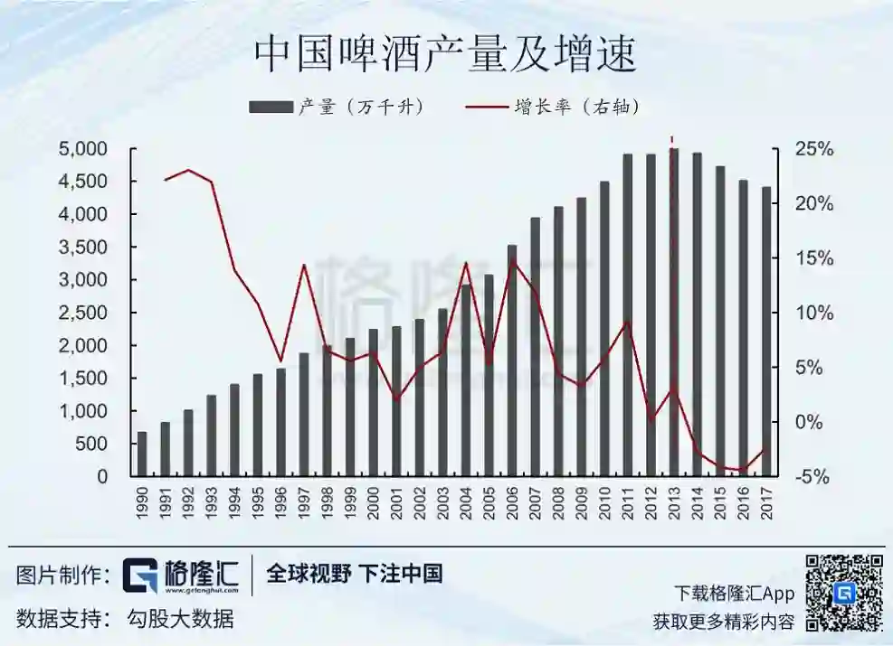 1.总量下降:啤酒的总量下降,不仅在数据上有体现,而且也是我们日常生活中可以观察得到的。回想5-10年前,似乎聚会喝啤酒的单位都是“箱”,而现在我们能感受得到,喝啤酒的单位变成了“瓶”甚至到”杯”。追求健康和餐饮质量的背景下,人们对啤酒的需求也在逐渐下滑。作者作为一个东北人,更切身的感受到了大家对喝啤酒热情的下降。以往常见的“对瓶吹”、“踩箱喝”都几乎消失不见了。