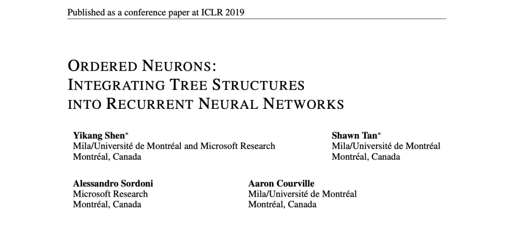 今天, ICLR2019 公布了最佳论文,有两篇论文获得了最佳论文,在此对获奖论文作者及团队表示祝贺!一篇是《Ordered Neurons: Integrating Tree Structures into Recurrent Neural Networks》,在 RNN 网络中集成树结构,提出一种神经元排序策略,由蒙特利尔大学、微软研究院共同研究发表;另一篇是 MIT CSAIL 的研究成果《The Lottery Ticket Hypothesis: Finding Spare, Trainable Neural Networks》。下面就为大家带来这两篇最佳论文的解读。