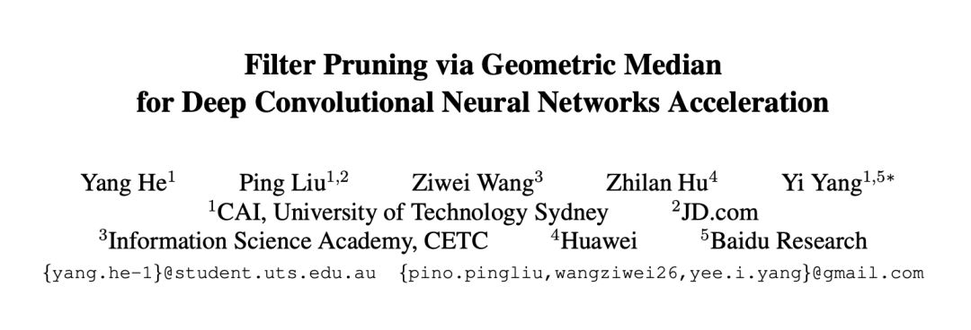 本文提出了新的基于滤波器的几何中心(geometric median)的剪枝算法,来对神经网络进行压缩和加速。现有的剪枝算法普遍认为,范数(Lp-norm)小的滤波器可以被去掉而不影响网络性能。