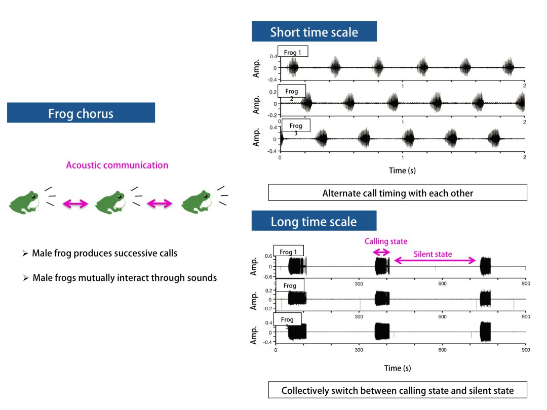 【2】Ikkyu Aihara , Daichi Kominami , Yasuharu Hirano and Masayuki Murata. Mathematical modelling and application of frog choruses as an autonomous distributed communication system. Royal Society Open Science, 2019 DOI: 10.1098/rsos.181117