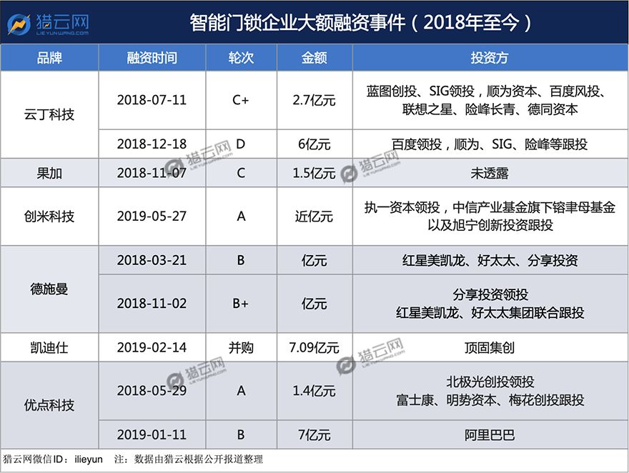 行业的痛点正是这批互联网人的机遇,他们争相涌入这个市场。云丁和果加是较早切入的互联网品牌,他们一改传统锁企的“五金思维”,从互联网、物联网、手机、电子锁、零售等行业招募了一批技术人才,以做手机的标准和供应链去做智能门锁,很快占据了明显优势。《报告》显示,云丁和果加已进入公寓锁第一梯队,占据了70%以上的市场份额。