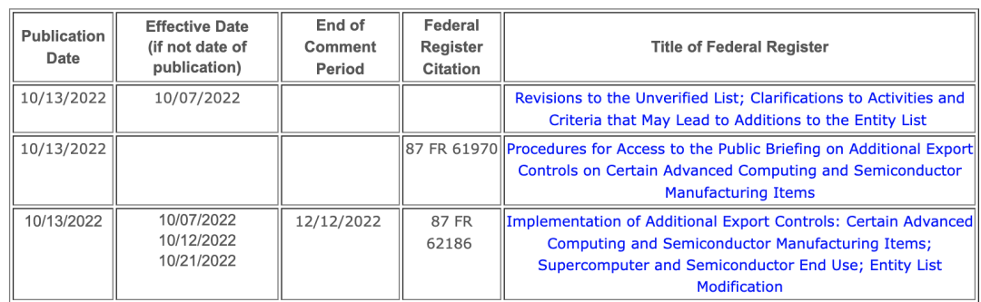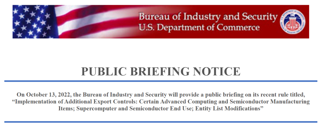 10月7日,美国商务部工业与安全局(BIS)对出口管制政策进行了一系列更新。BIS称,此次更新为保护美国国家安全和外交政策利益而持续努力的一部分。 这次对出口管制条例的更新,旨在进一步限制中国获得先进计算芯片、开发和维护超级计算机以及制造先进半导体的能力。这是近期美国商务部针对中国芯片和半导体行业的动作最大的一次打压活动。时隔一周,当地时间10月13日,美国商务部再次召开在线公开简报,对出口管制条例的相关修订和实施规则做了进一步确认和解释。简报由美国商务部助理部长Thea D. Rozman Kendler主持。