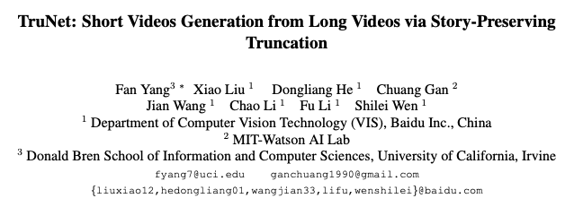 百度的研究人员收集并标注了一个新的大型视频截断数据集,名为TruNet,其中包含1470个长视频,每个视频平均包含11个短故事。