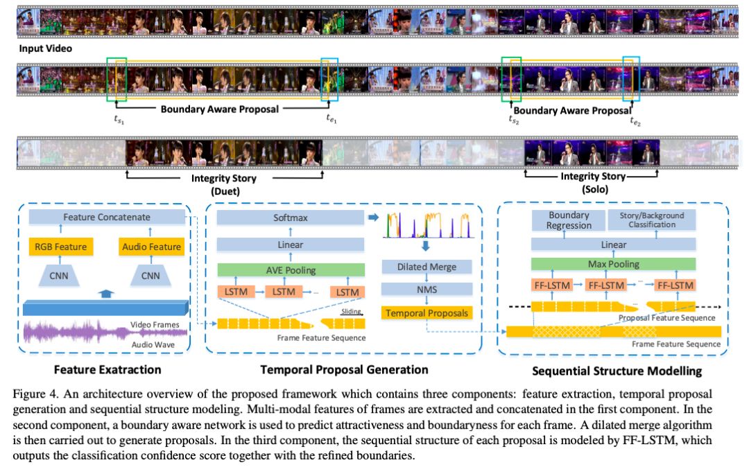BAN通过同时考虑帧级别的吸引力大小和是否为边界来生成高质量的候选时间片段。FF-LSTM则用于捕获一系列帧之间的高阶依存关系来确定候选时间片段是否是连贯且完整的故事。
