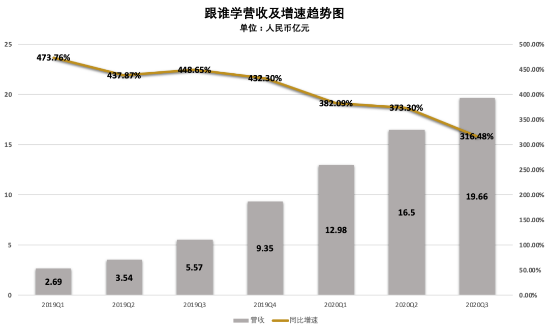 从2018年起,跟谁学连续8个季度实现规模化盈利,净收入连续6个季度同比超过4.5倍,连续5个季度的增速超过了400%。