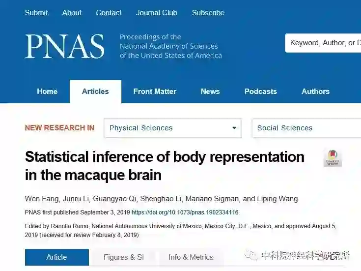 9月3日,《美国科学院院刊》在线发表了题为《猕猴对自我身体表征的统计推理》的研究论文。该研究由中国科学院脑科学与智能技术卓越创新中心(神经科学研究所)、上海脑科学与类脑研究中心、灵长类神经生物学重点实验室王立平研究组完成,博士后方文为该论文第一作者。在该研究中,研究人员利用自主设计搭建的虚拟现实呈现系统,在人类和猕猴被试上建立身体幻觉行为学范式,并首次在猕猴上对其身体“拥有感” (ownership) 进行定量行为学测量和计算建模。更重要的是,研究人员通过电生理记录的方式,发现了猕猴大脑前运动皮层的群体神经元以贝叶斯因果推断的方式对身体拥有感进行编码。
