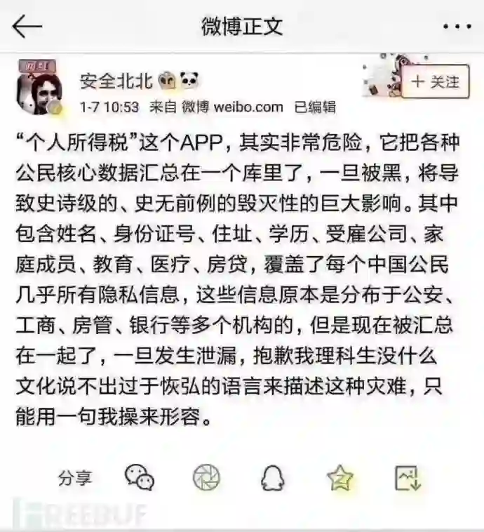 首当其冲的是隐私泄露。这次税改之后,很多的申报环节涉及到住房、养老等信息,所以申报时填写的信息从身份证号码、学历、住址到工作信息、房贷、医疗等等都需要被记录。有人对于官方APP的风控能力有所担忧,但是可以确定的是在假冒APP上这些信息天上必定存在非常大的信息泄露风险。