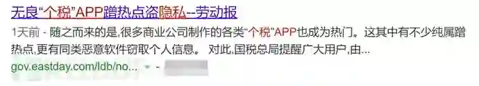 而只有准确搜索“个人所得税-国家税务总局”时,出来第一个才是国家税务总局发布的官方APP。