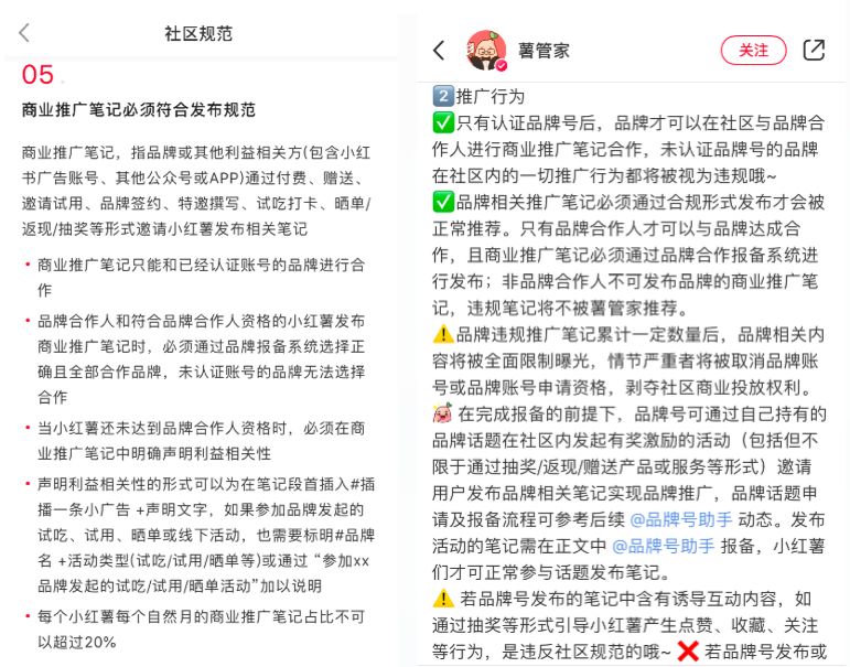 目前,非合作人已不得再发布商业笔记。但是,平台暂没有清楚的规则说明商业笔记的界定标准。
