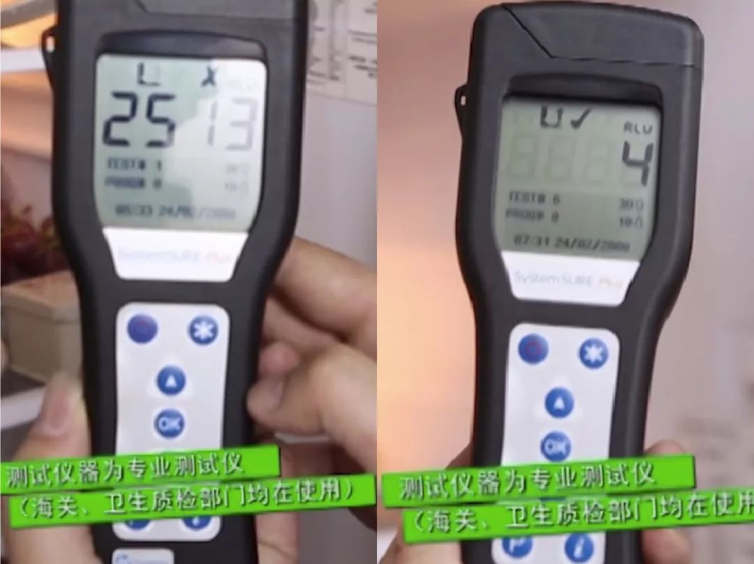 研究人员用卫生检验检疫部门专用仪器做了实验测试: