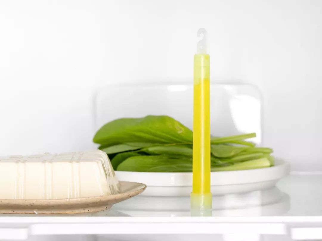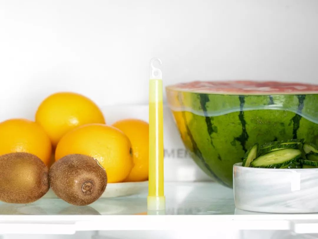 轻松一折,抗菌棒会从透明色慢慢变成淡黄绿色,放进冰箱就可以除菌了!
