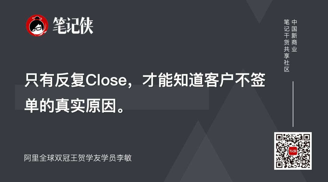 “我终于理解了贺老师说为什么要Close100遍,因为只有反复Close,才能知道客户不签单的真实原因。”