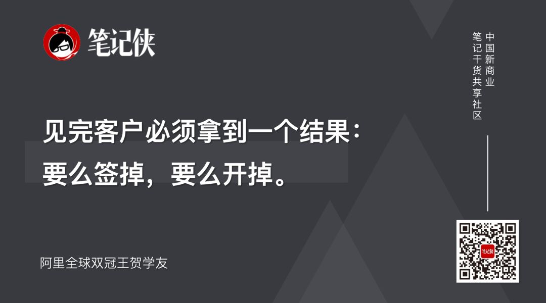 要告诉自己,见完客户必须拿到一个结果:要么签掉,要么开掉。