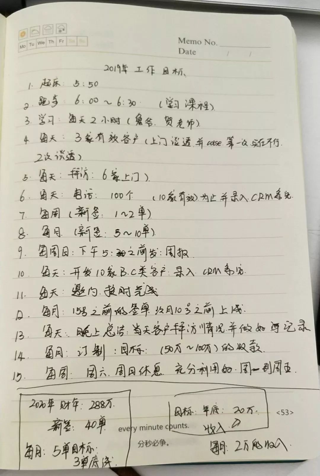 ▲ 李敏(花名:搏月)2019全年奋斗目标
