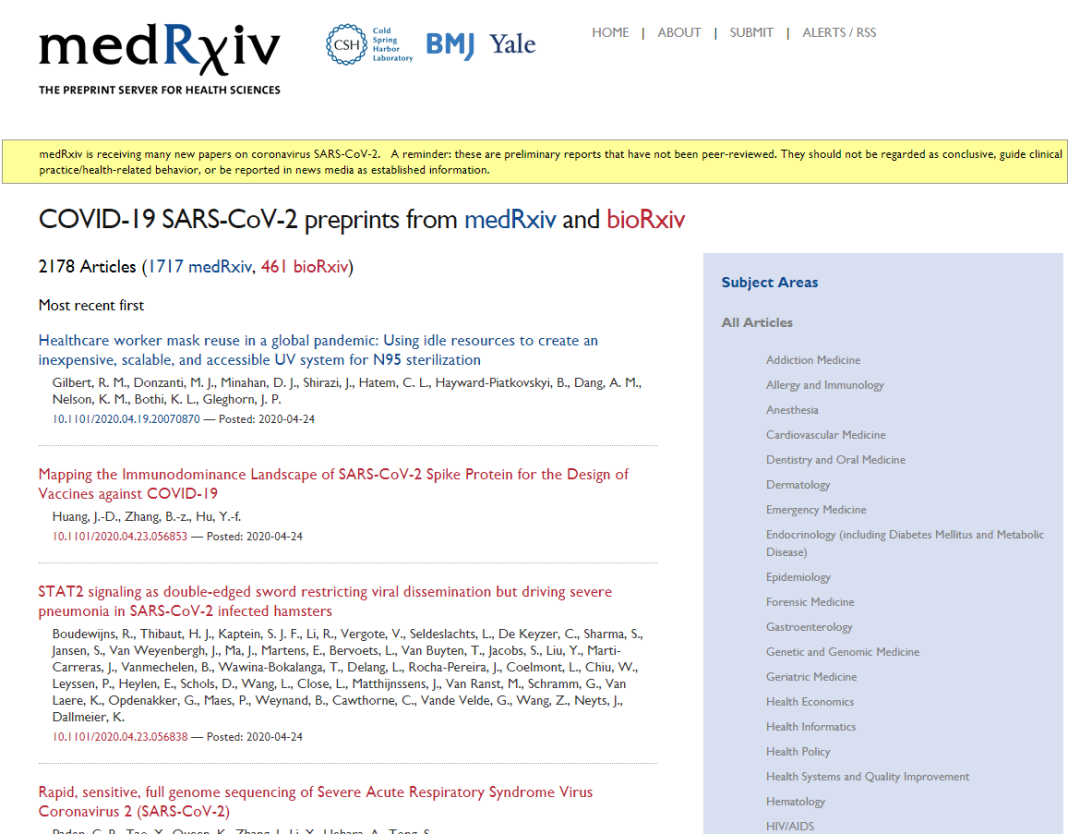 预印本网站发表了大量未经同行审议的新冠相关论文