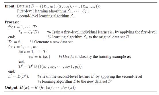 Wolpert在1992年的一篇论文中对 stacked generalization进行了介绍 , stacked generalization背后的基本思想是使用大量基分类器,然后使用另一种分类器来融合它们的预测,旨在降低泛化误差。