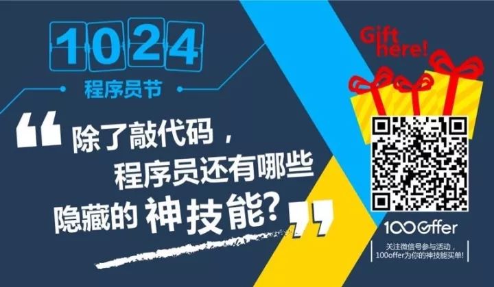 1024程序员节这天,100offer给你一个撕掉标签的机会:关注100offer微信号,发送一段话/一张图/一段视频/一条语音…展示你除了敲代码以外的神技能,还有最高价值1024元的“程序员兴趣基金”等你拿!