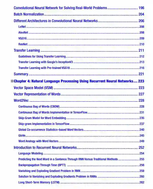在这本书中,作者非常细致地从数学和科学的角度解释了与深度学习相关的概念和技术。此外,第一章以简洁易懂的方式详细介绍深度学习所涉及的基础数学知识。本书选择TensorFlow作为开发平台来搭建各种深度学习模型。本书先以简洁的方式介绍各类深度学习模型以及相关的基础知识,然后基于TensorFlow平台给出了丰富的实际应用中的各种应用程序。主要内容分为以下六章: