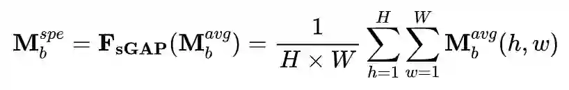 为了动态捕获不同频带、时间点中对情绪识别有辨识度的特征,我们设计了频/时注意力。以频域注意力机制为例,我们首先对输入的张量作空间全局池化(spatial-wise global average pooling, sGAP)用于退化空间维度,其过程定义如下: