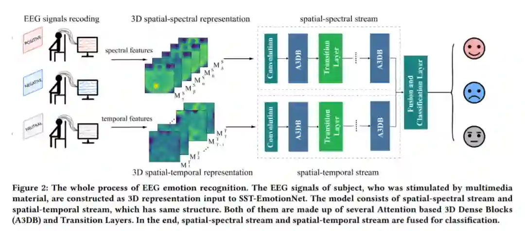 1. 基于构建的脑电的时-频-空特征,我们提出了一种双流 3D 密集连接网络,在统一的网络框架下融合了脑电信号的时-频-空特征;