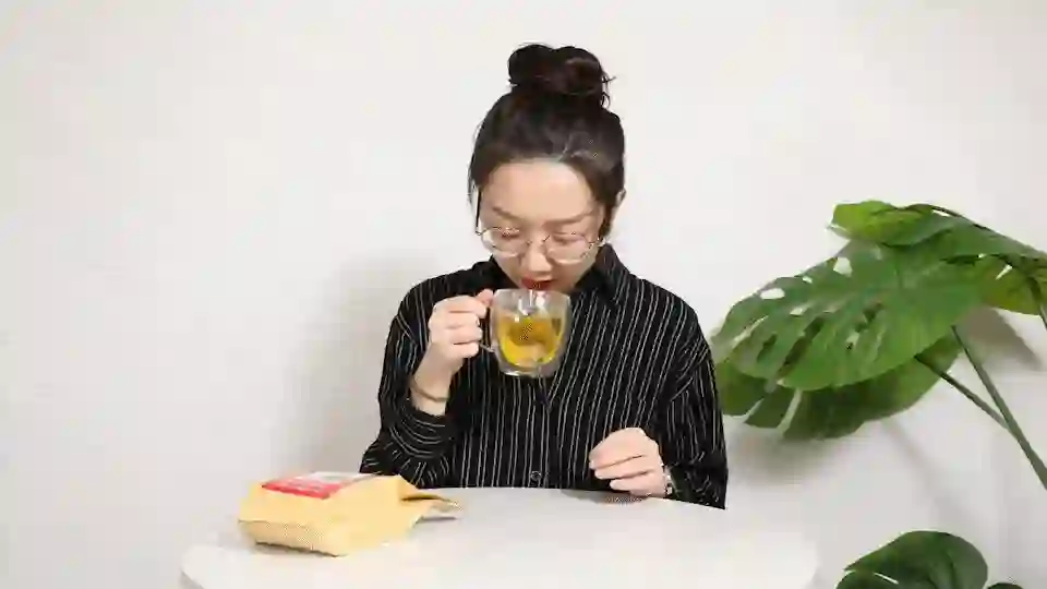的确是闻起来就一股菊花味,喝起来还有点荷叶带来的薄荷味,但至于冬瓜乌龙茶玫瑰和决明子……只能说确实没有喝出来。