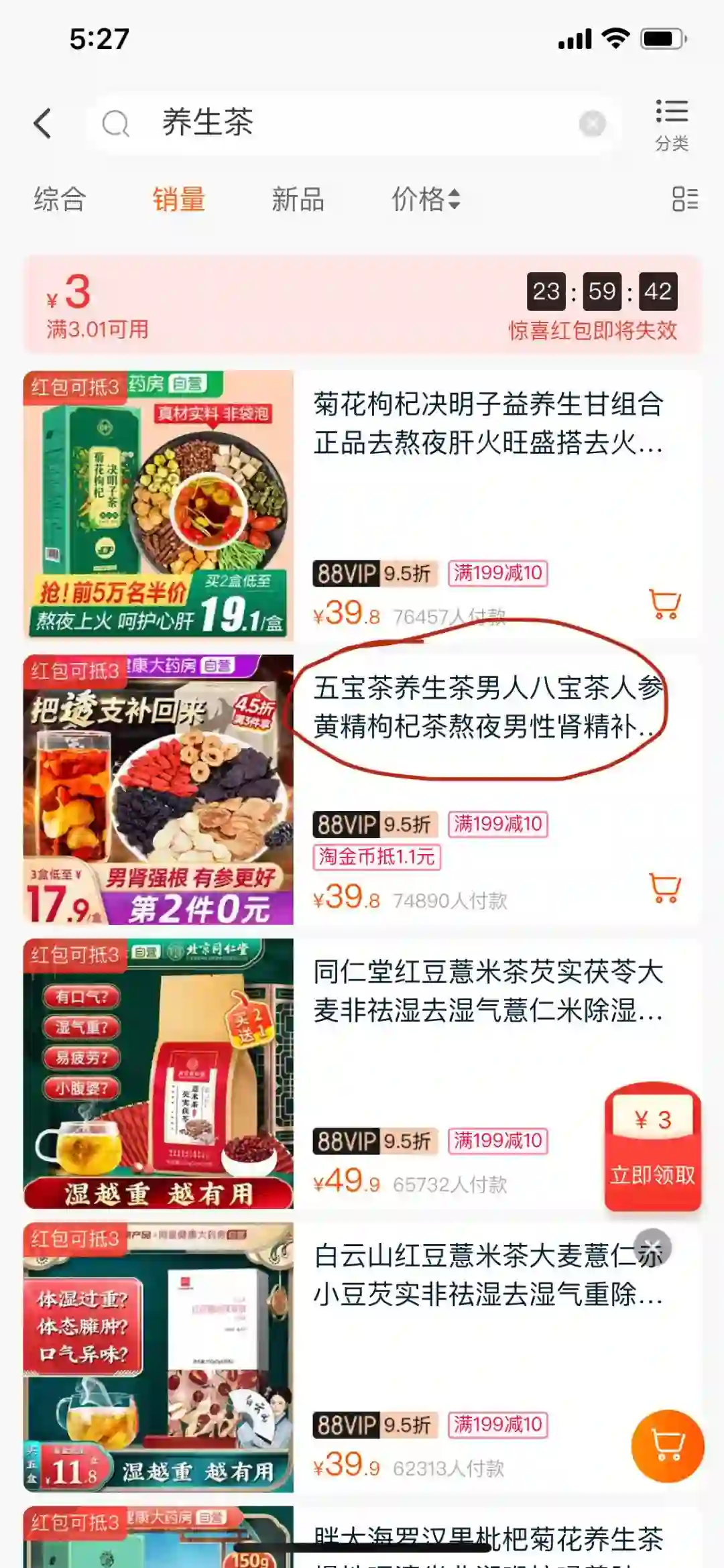 这个五宝男人茶真的很有排面,属于是阿里健康大药房销量第二的养生茶产品: