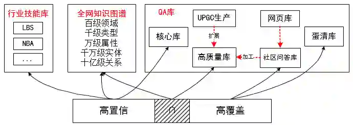 高质量库:社区问答库覆盖高但质量参差不齐,社会化生产质量高但数量相对较少,通过机器对社区问答库的清洗和对社会化生产库的扩展,最终沉淀成高质量库;