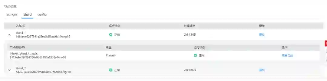 提供基于 shard、mongos、config 组成的分片集群实例,轻松扩展读写性能,用户可以方便快捷地构建 DDS 分布式数据库系统。