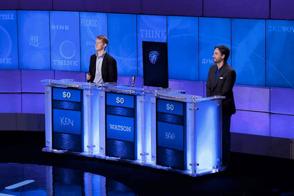 就像 Deep Blue 与 Garry Kasparov 的对弈一样,2011 年,IBM 的 AI 面临着另一个巨大的挑战,IBM Watson 在挑战 Jeopardy!(美国一档电视智力竞赛综艺节目)的前优胜者 Brad Rutter 和 Ken Jennings ——冠军奖获得 100 万美元奖金。比赛结束后,被 Watson 碾压的 Ken Jennings 打趣说:“我,作为一个人,欢迎我们的新机器人霸主。”(I, for one, welcome our new robot overlords.)