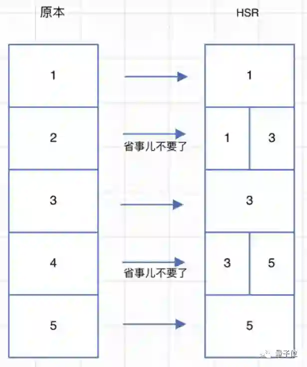 HSR技术还要更精细一些,没有直接将每两行并成一行扫描,而是在偶数行上,一半时间显示上一行数据,一半时间显示下一行数据,例如第二行显示的是1+3行的数据: