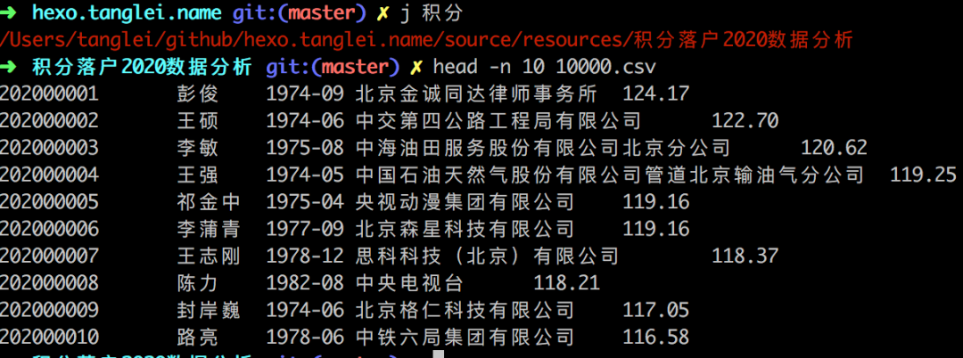 16➜ 积分落户2020数据分析 git:(master) ✗
