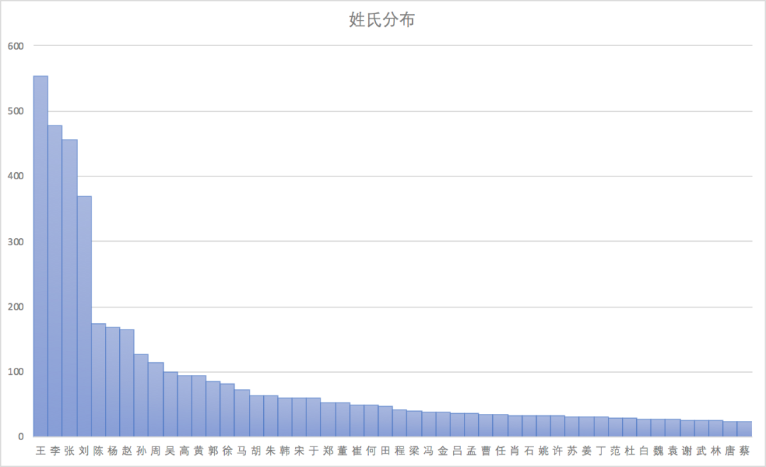 获取取得户口名额的人中姓氏最多的