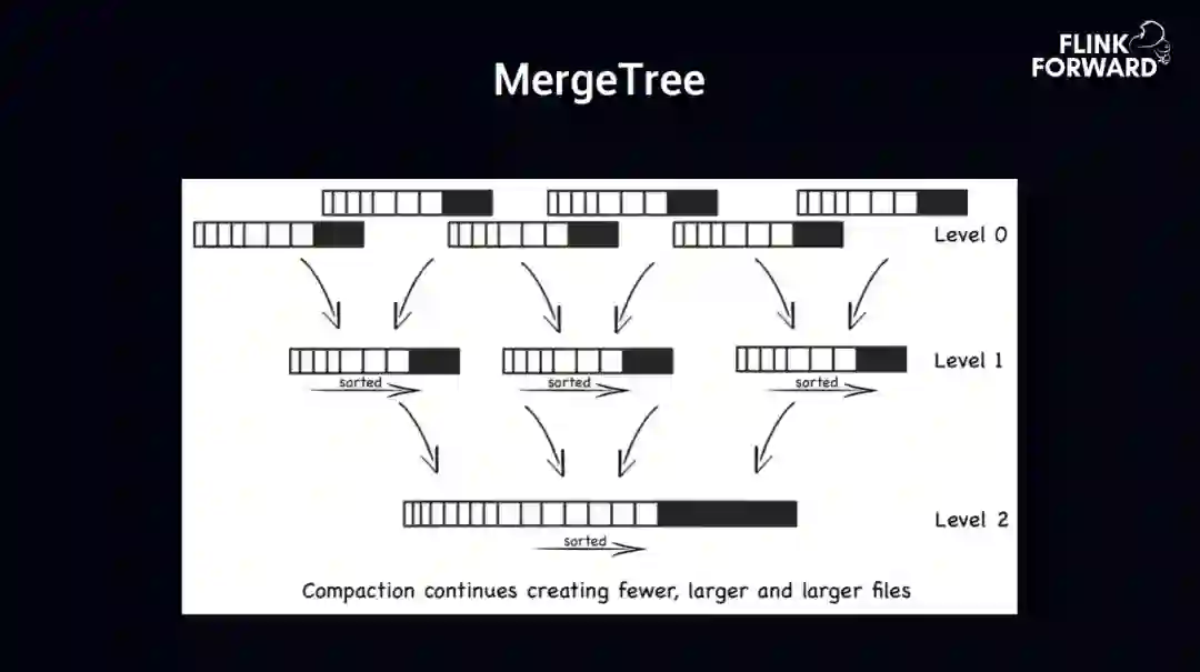 上图是 MergeTree 的运行原理图解,最上边的第一层是数据一个 batch 一个 batch 的实时写入,后台会做每一个层级的数据 merge,这块跟 HBase 差不多的实现,merge 的时候会进行数据的排序,然后做一个数据索引。