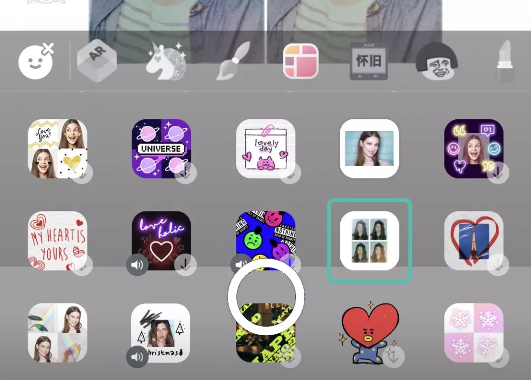 和 B612 类似,Faceu 是一款美颜自拍 app,而这种故障风的效果就藏在众多特效中,它的位置如下图: